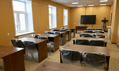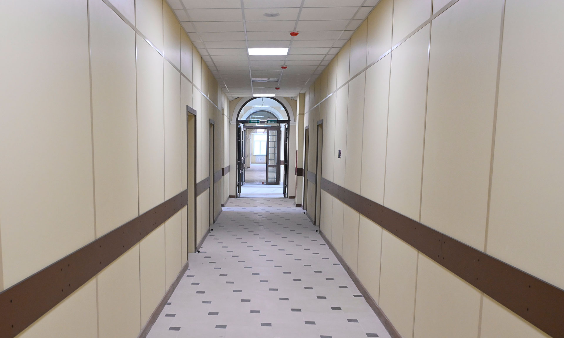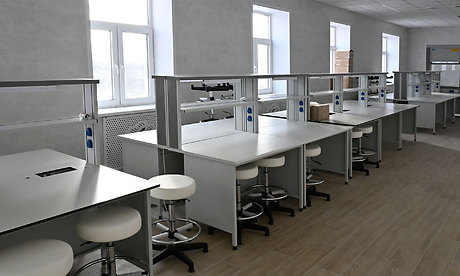 Завершены отделочные работы, установлены двери, завозится мебель, комплектуются лабораторные помещения. Сейчас строители работают в цокольном этаже — там обустраивают пищеблок и столовую, гардероб.