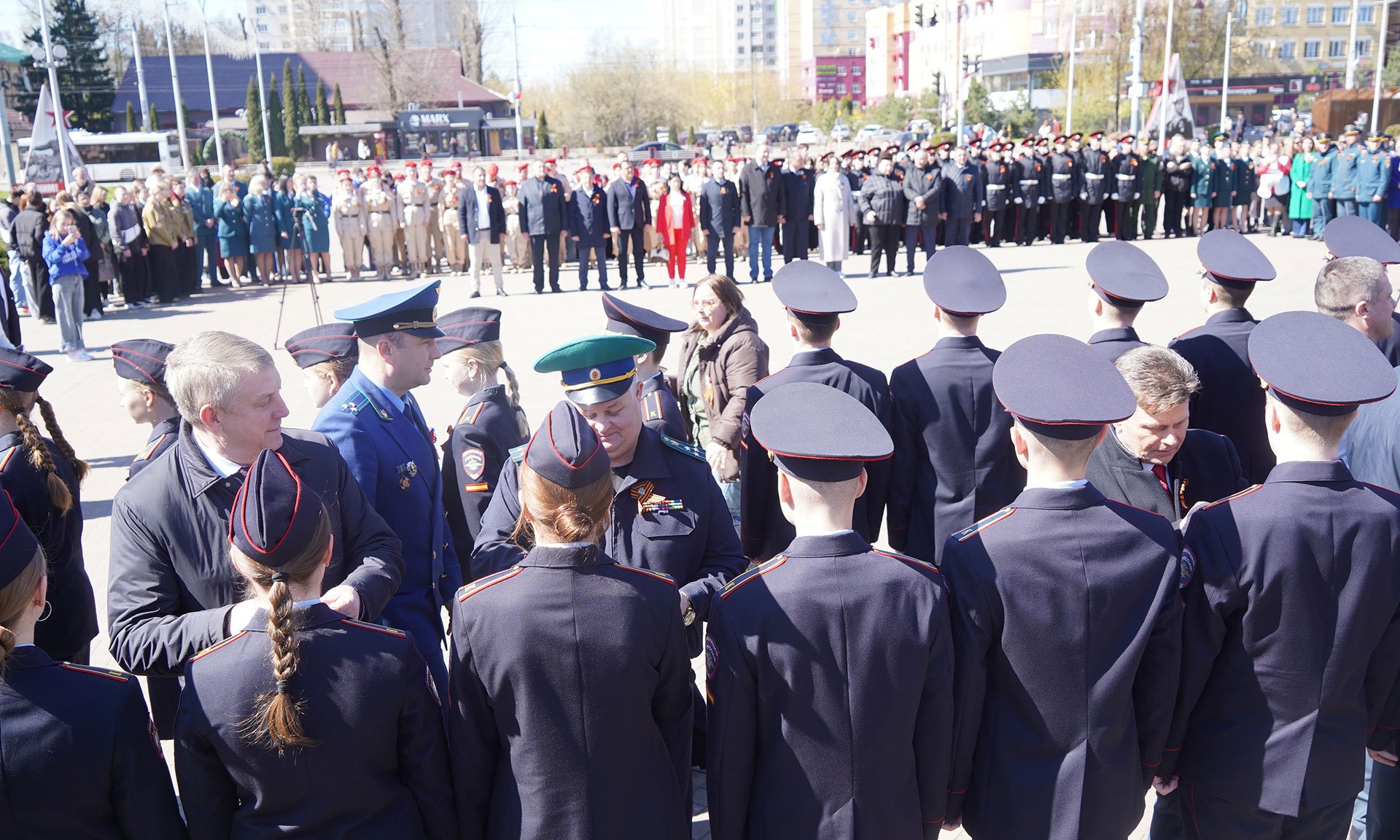 Георгиевские ленты вручены юным участникам «Движения Первых» и курсантам Брянского филиала Орловского юридического института МВД Российской Федерации имени В. В. Лукьянова.