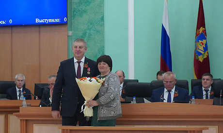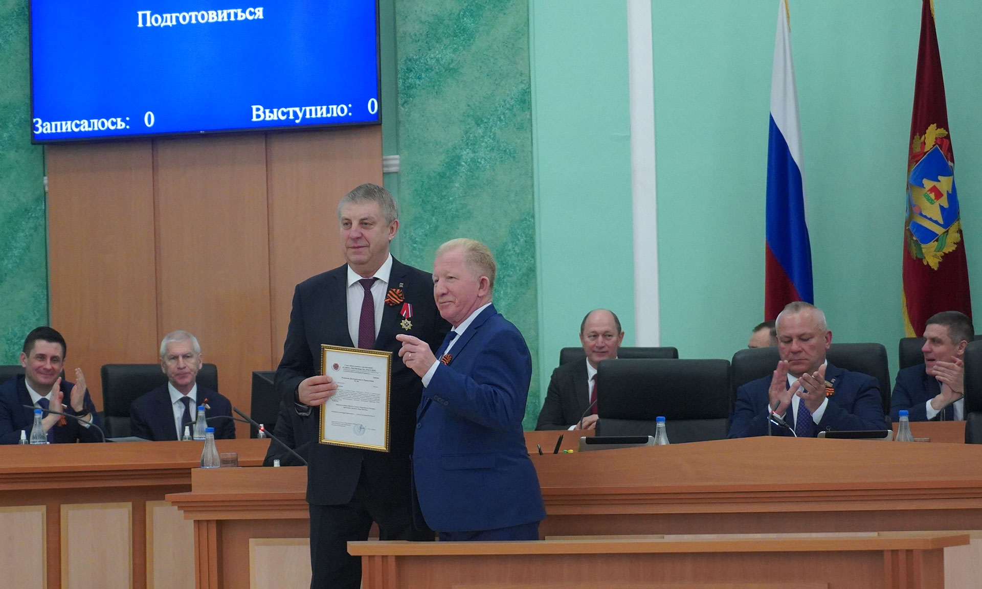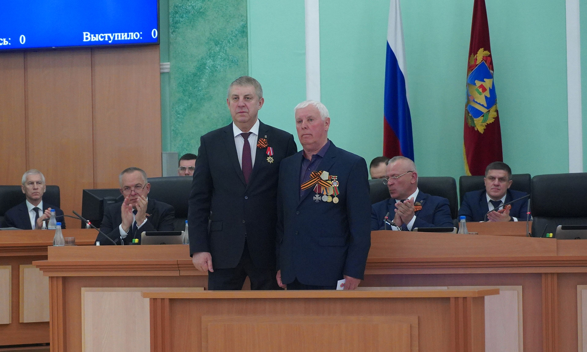 Медаль Губернатору Александру Богомазу вручил председатель правления Брянской областной общественной организации инвалидов-чернобыльцев «Союз «Чернобыль», представитель Президента «Союза Чернобыль» России в Брянской области Вячеслав Карнюшин.