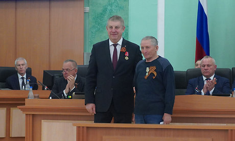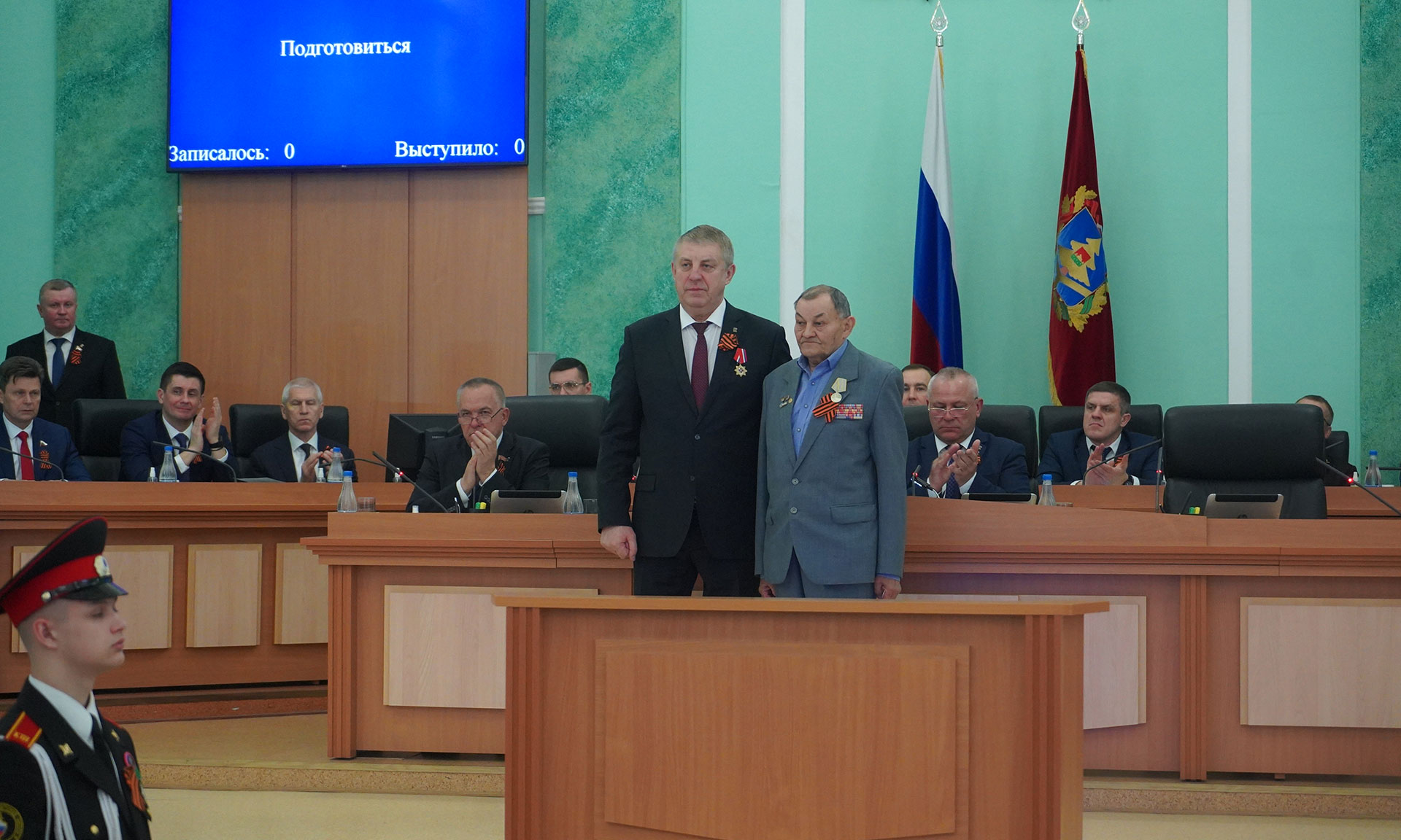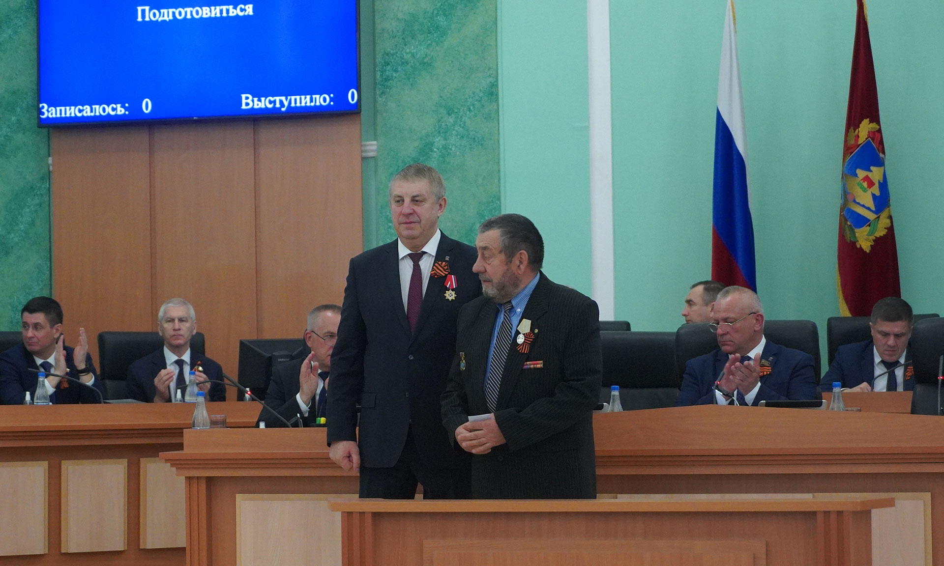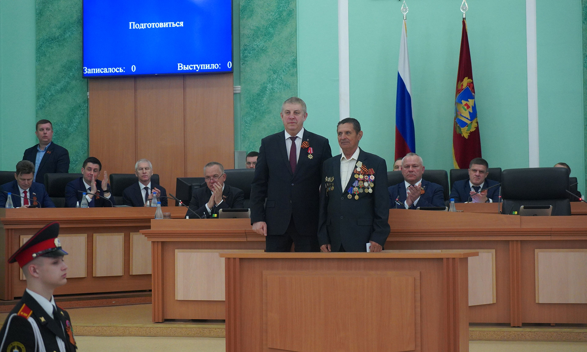 Медаль Губернатору Александру Богомазу вручил председатель правления Брянской областной общественной организации инвалидов-чернобыльцев «Союз «Чернобыль», представитель Президента «Союза Чернобыль» России в Брянской области Вячеслав Карнюшин.