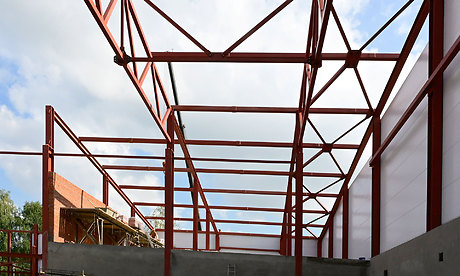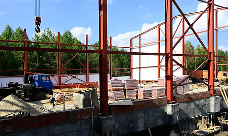 Сейчас смонтированы металлические колонны, отштукатурены перегородки в административной части, смонтирована котельная.