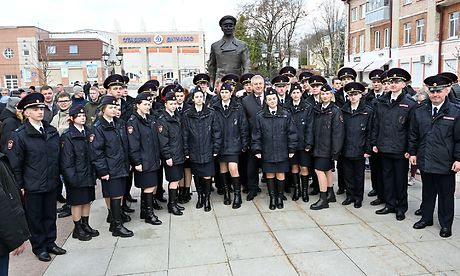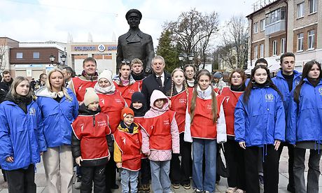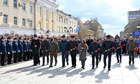 Участники торжественного мероприятия возложили цветы к памятнику первому покорителю космоса, Герою Советского Союза Юрию Алексеевичу Гагарину.